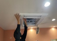 美容院で使用している埋め込み式エアコン2台のうち1台が壊れたので、入れ替える工事をお願いしました。